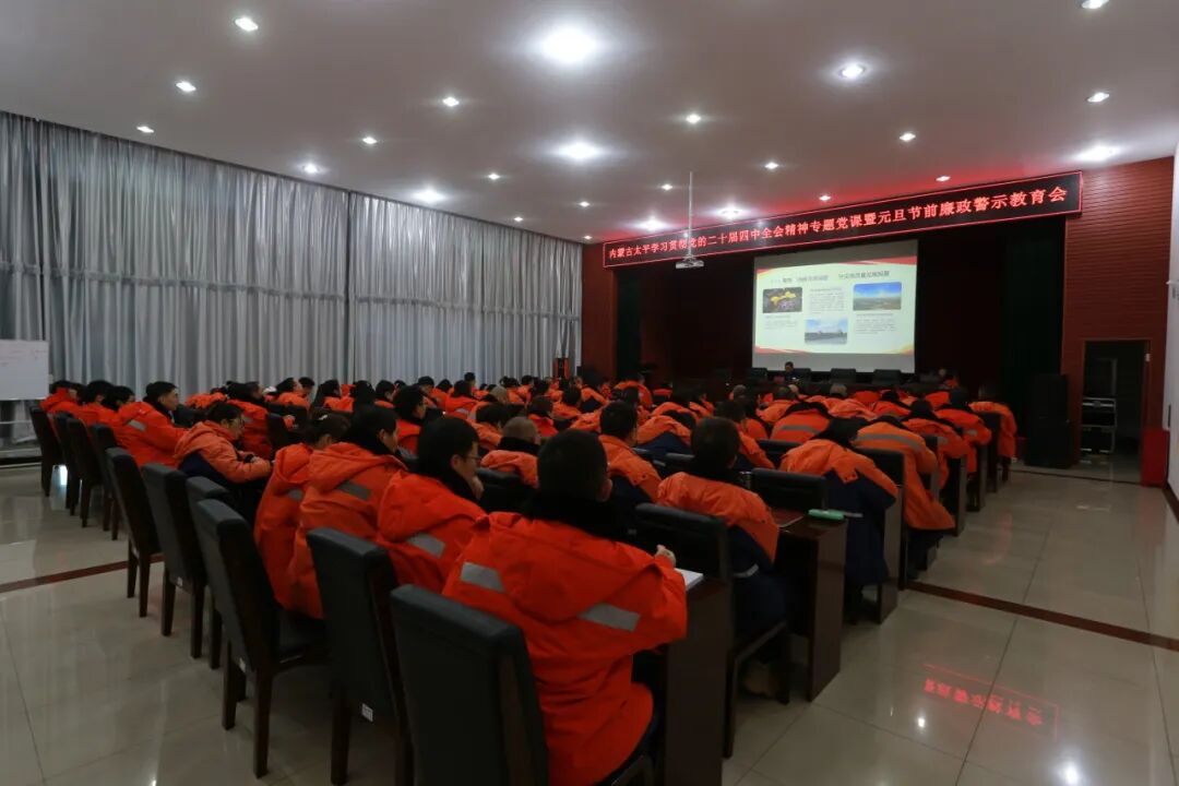 12月25日,内蒙古太平矿业有限公司召开深入学习贯彻党的二十届四中全会精神专题党课暨元旦节前廉洁警示教育会议。公司党委副书记、董事、总经理陈广宝讲授专题党课并作节前廉洁提醒。公司领导班子成员、全体党员干部、入党积极分子及团员青年代表共96人参加会议。
